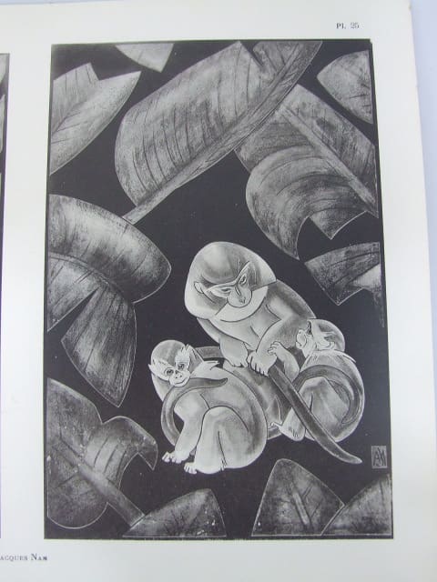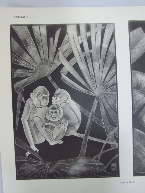 This original period print on card of monkeys is by Jacques Nam. From the archives of the Max Le Verrier Atelier and is stamped Max Le Verrier to the reverse. Item is sold unframed.