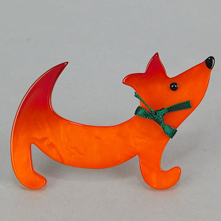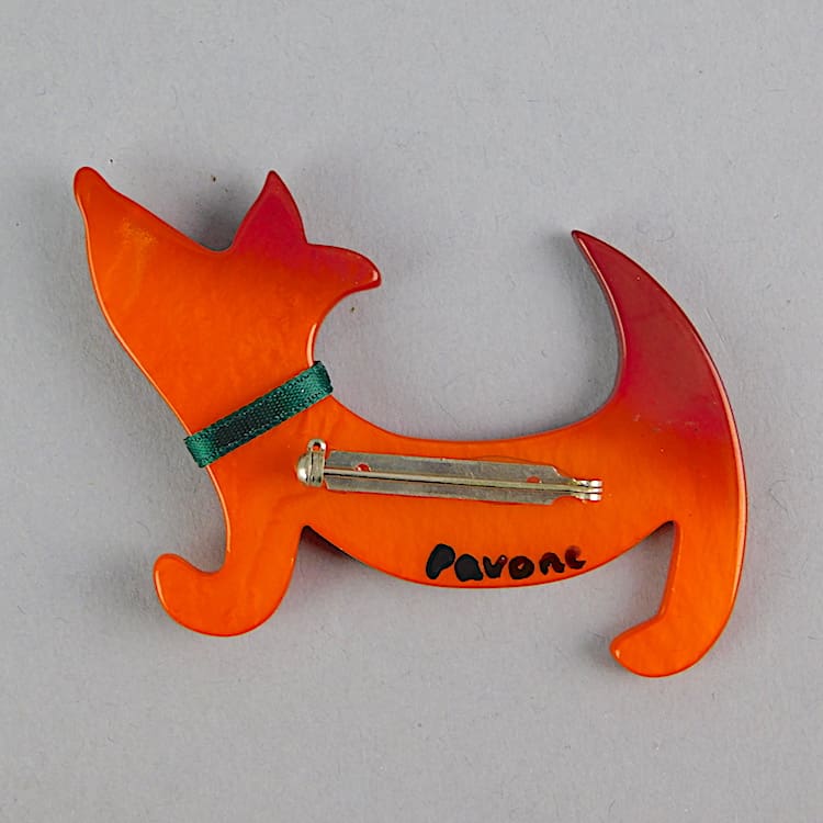 French vintage galalith hand made Teckel dog brooch by Marie-Christine Pavone. Hand signed to the reverse and fitted with a roll safety clasp.