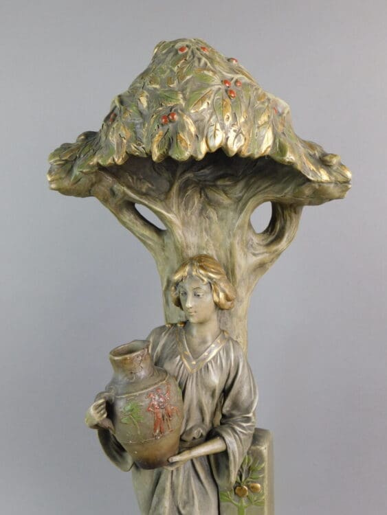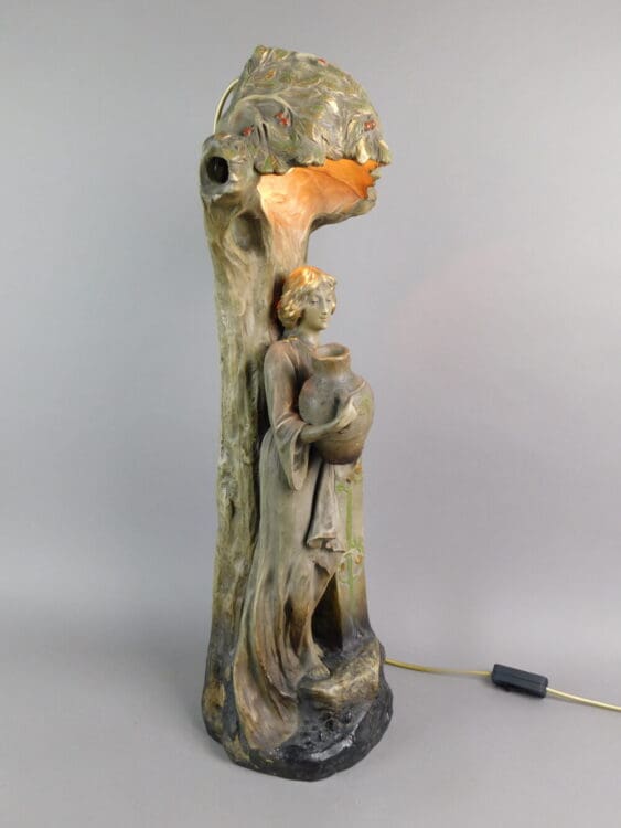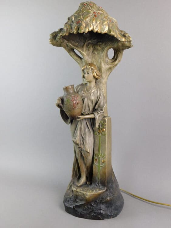 A large Grecian styled figure as a lamp by the Bohemian sculptor Johann Maresch. Impressed markings to base. Recently rewired and fitted with an inline on/off switch.