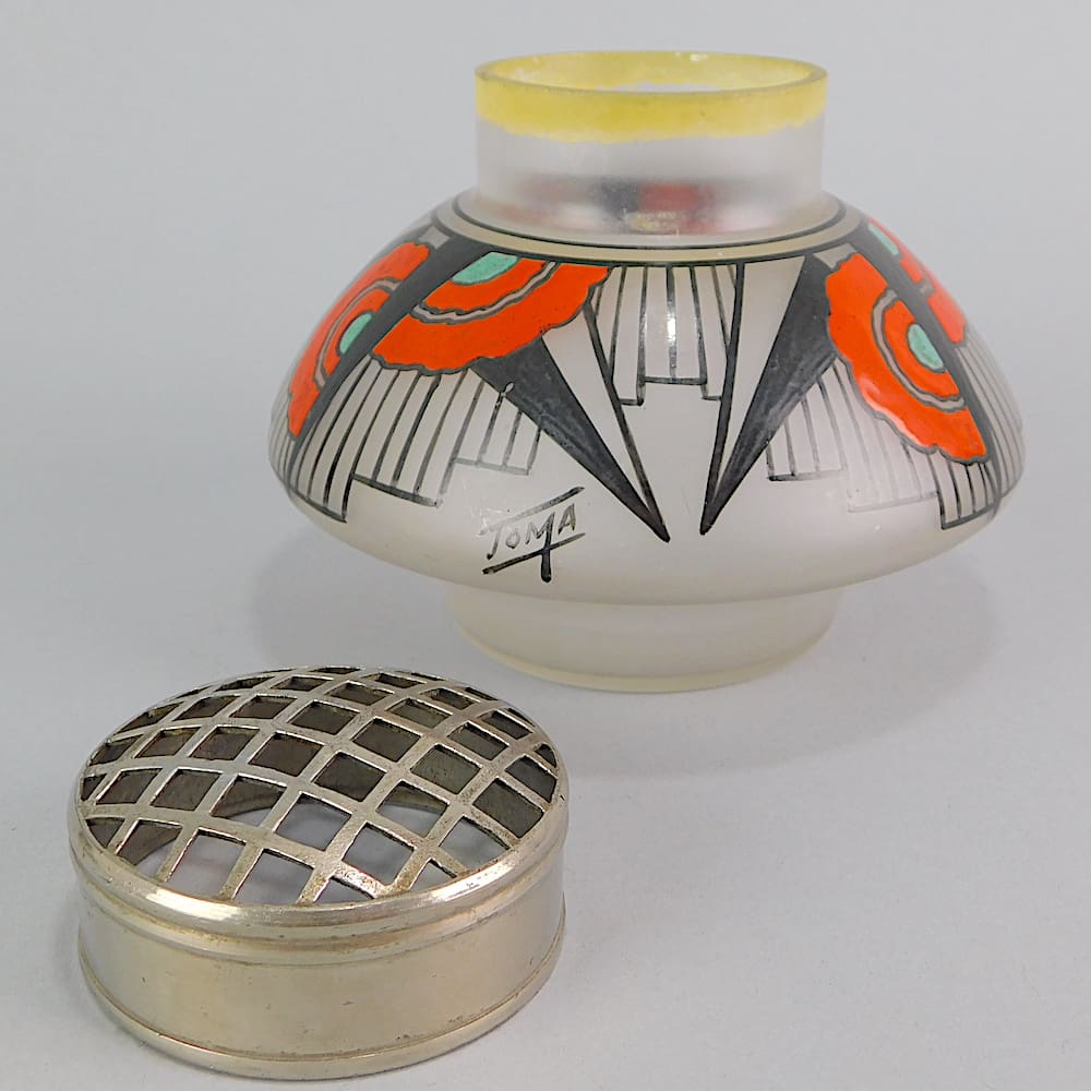 Complete with its metal flower frog.