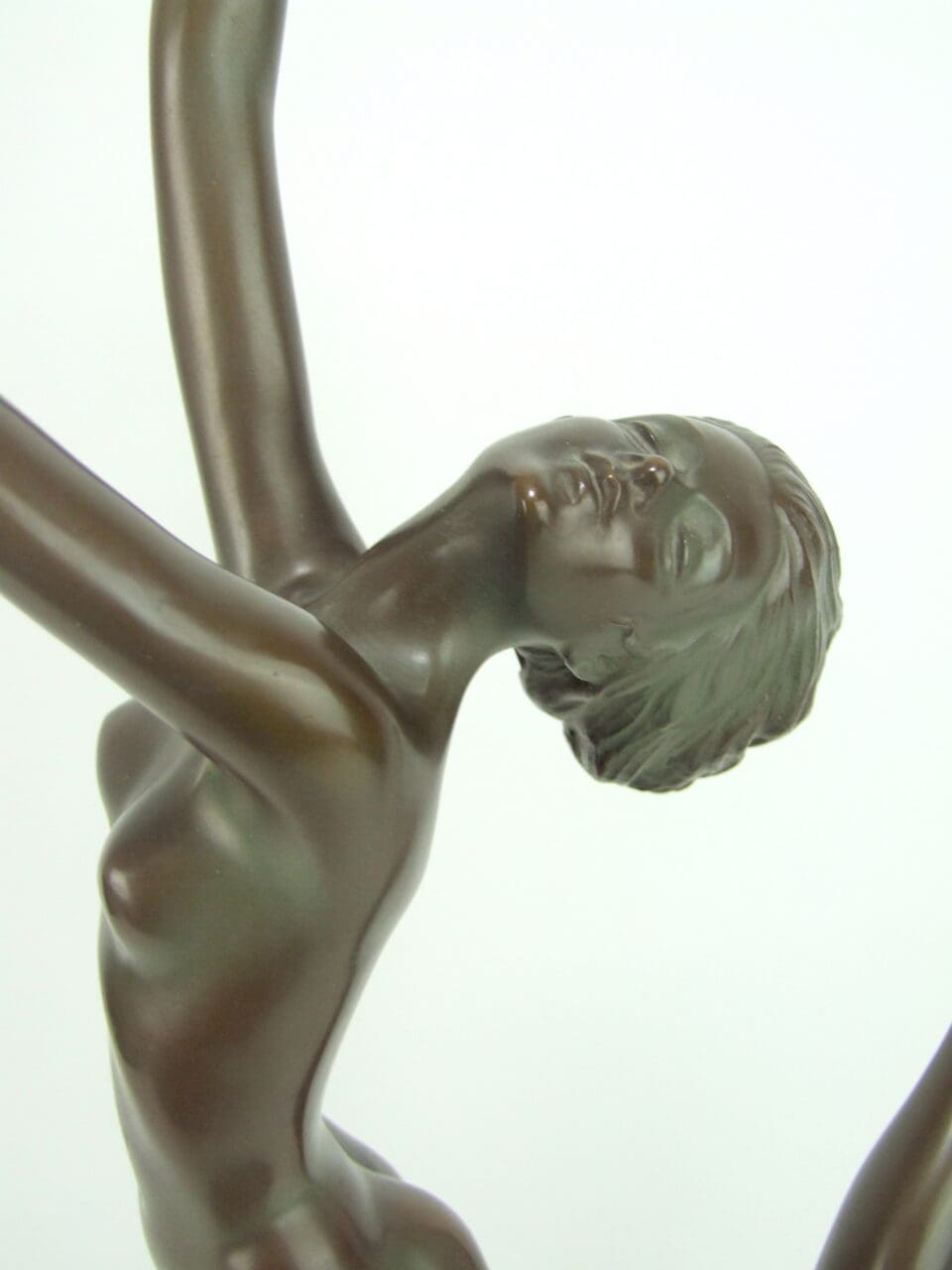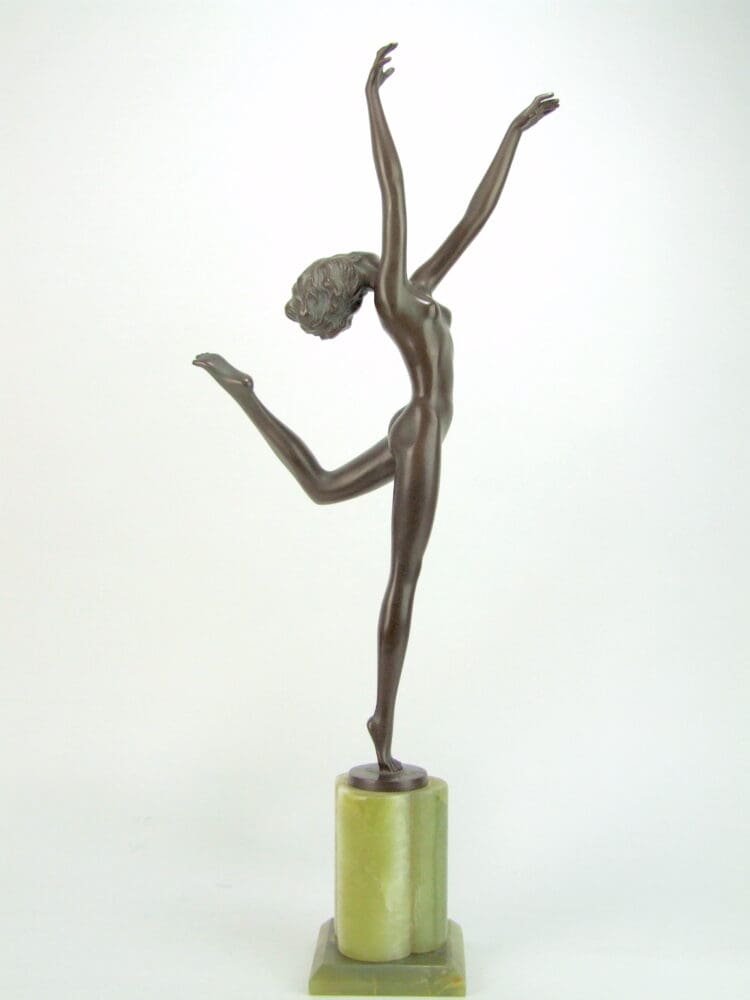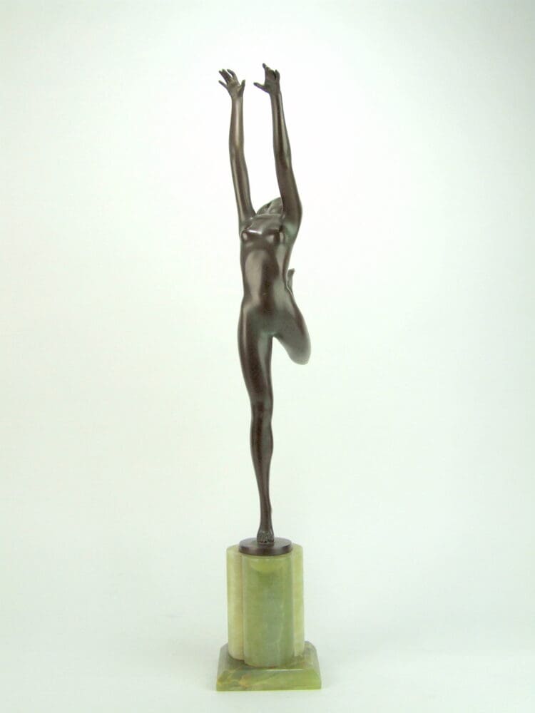 A huge art deco bronze patinated nude dancer by Josef Lorenzl. Signed to the bronze and mounted on a shaped onyx base.