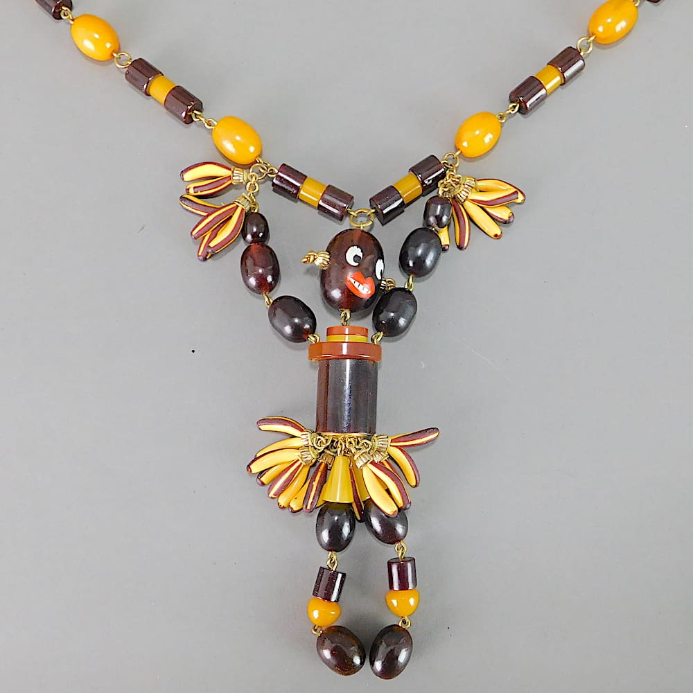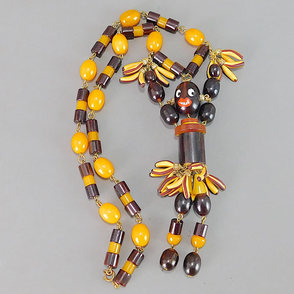 Rare French phenolic beads with hand painted face and bananas.