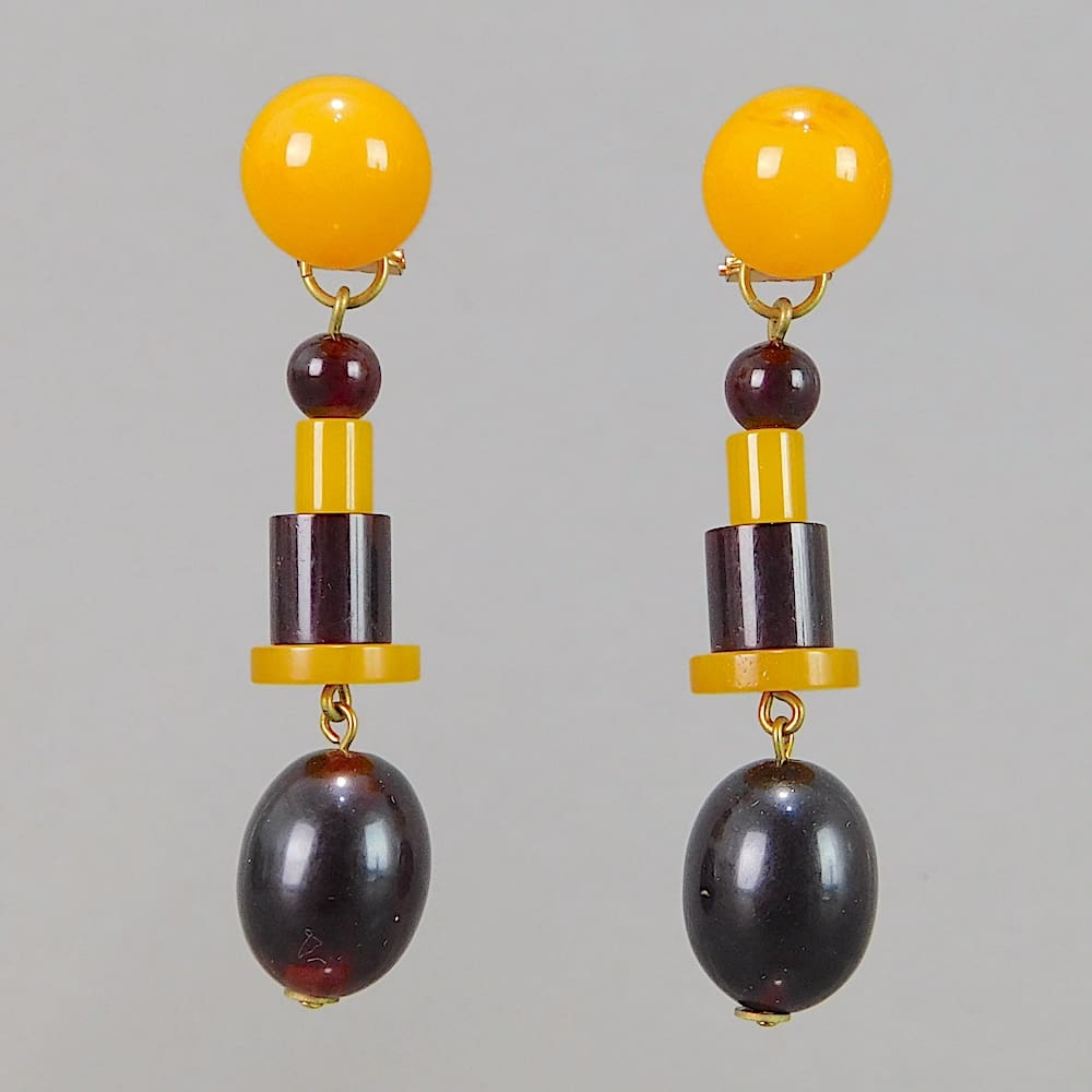 Consists of a long flapper necklace and matching clip-on earrings.