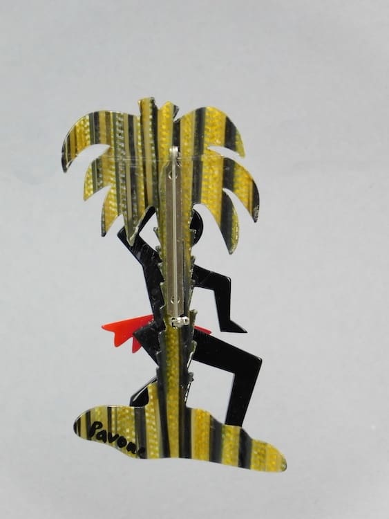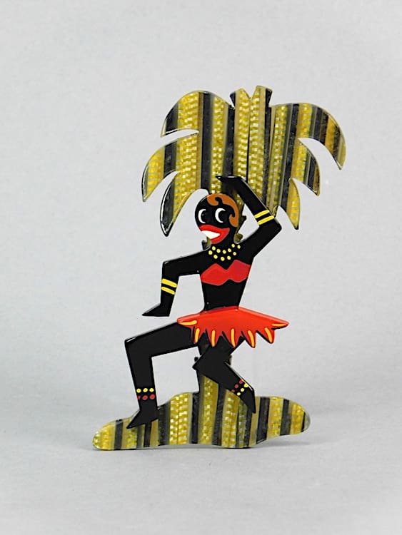 Large French vintage galalith, hand painted art deco Josephine Baker brooch.