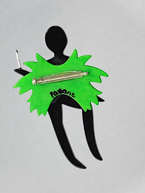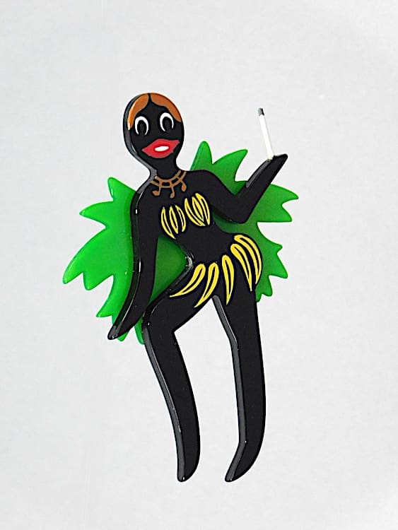 Large French vintage galalith hand painted art deco Josephine Baker brooch.