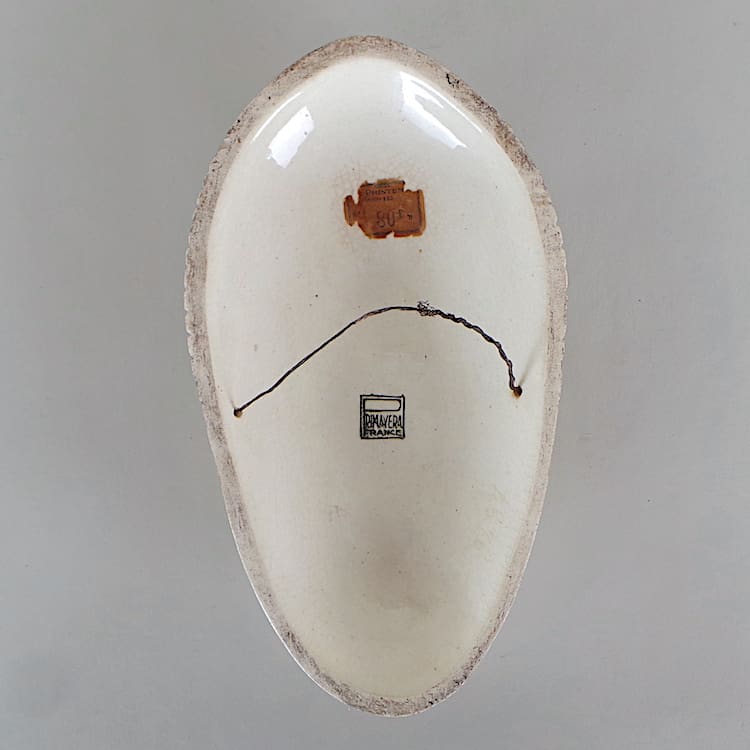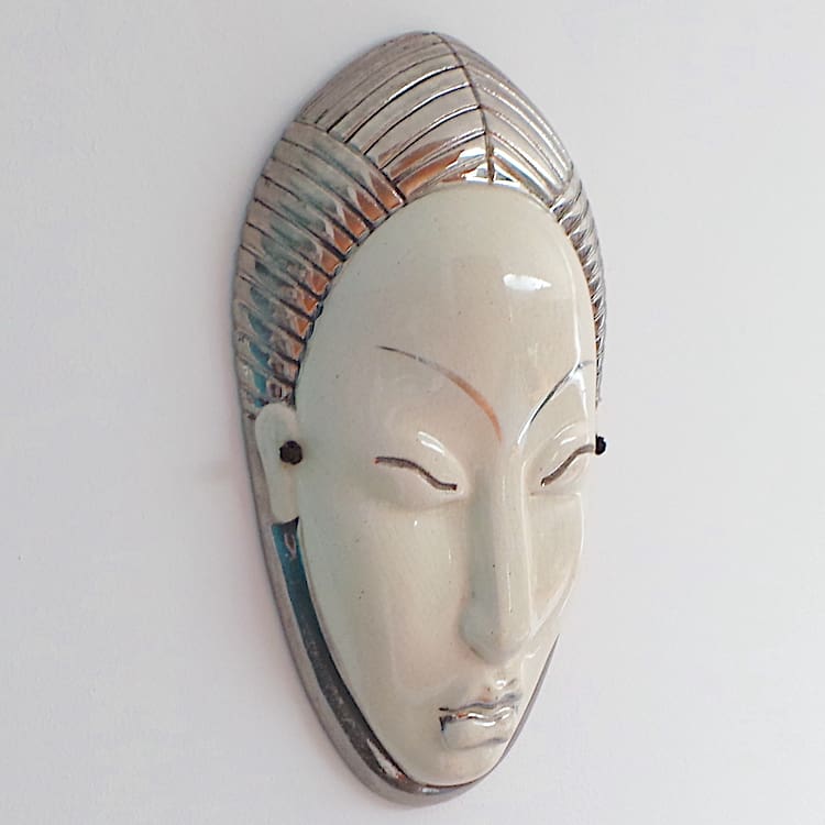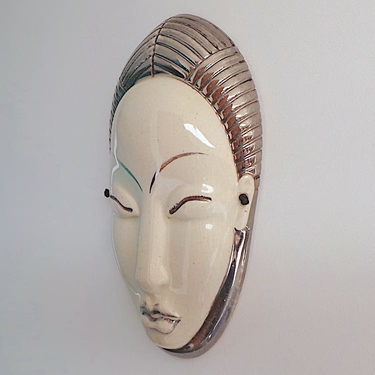 Large French cream and silver ceramic wall mask by Primavera.