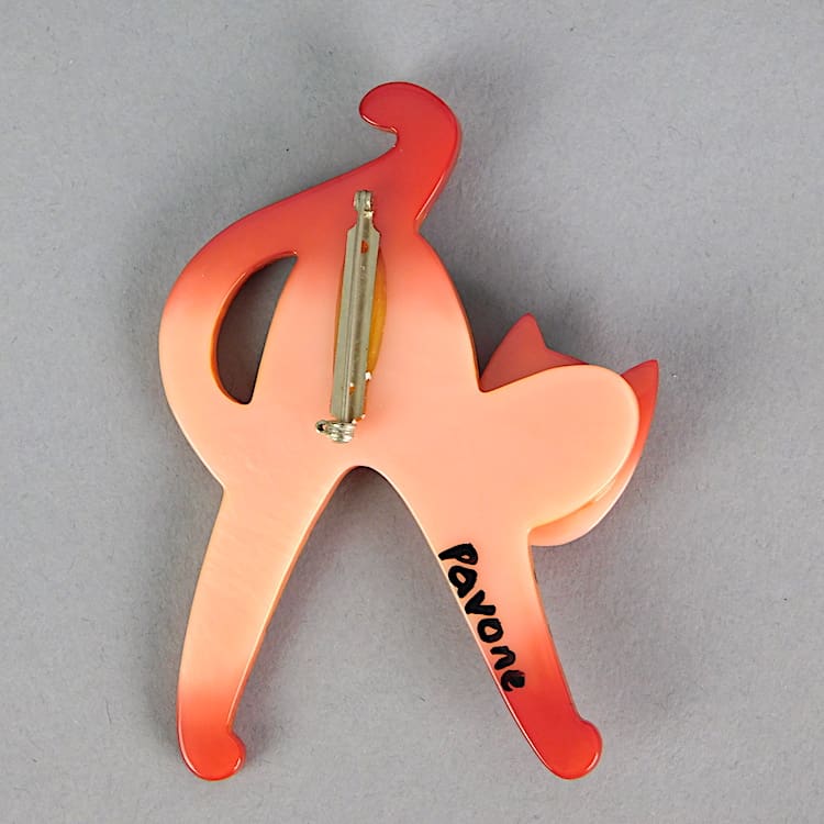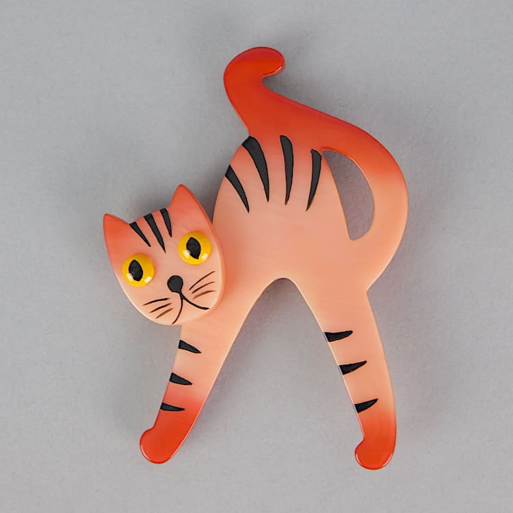 Hand painted and made galalith cat brooch by Marie- Christine Pavone.