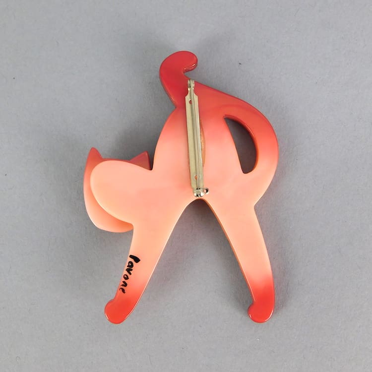 Hand painted and made galalith cat brooch by Marie- Christine Pavone.