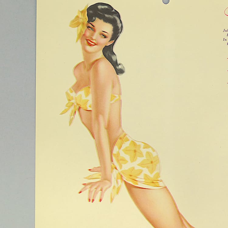 This is an original pin up girl from a vintage Esquire Girl calendar. Artwork by Alberto Varga with the printed signature to the bottom and verse by Earl Wilson.