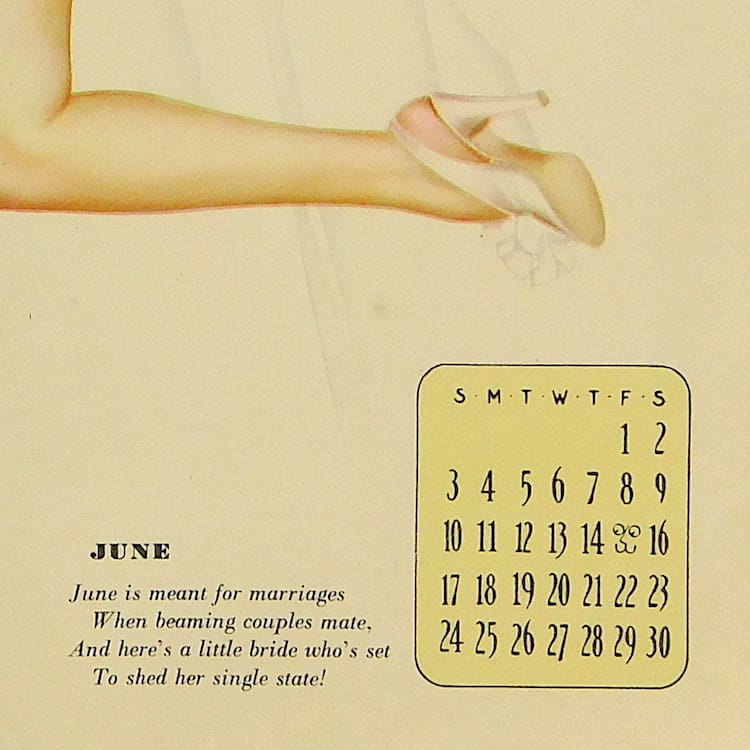 This is an original pin up girl from a vintage Esquire Girl calendar. Artwork by Alberto Varga with the printed signature and verse by Earl Wilson.