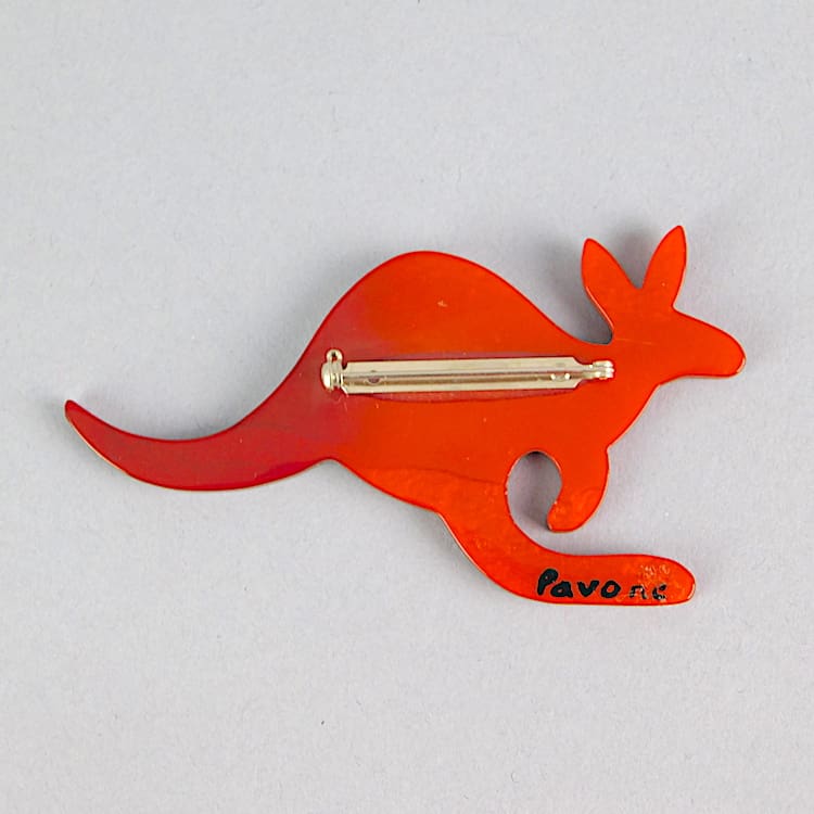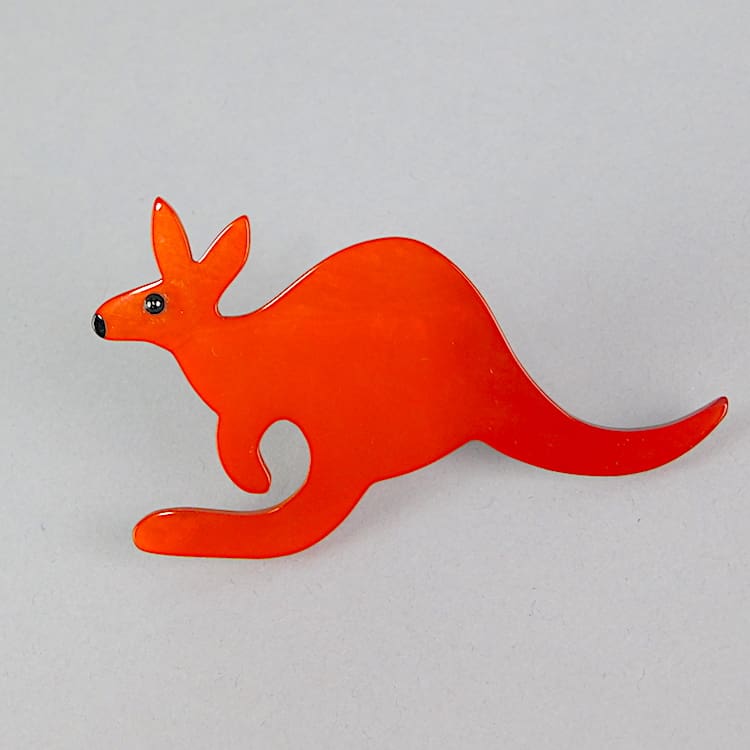 French vintage galalith hand made kangaroo brooch by Marie-Christine Pavone. Hand signed to the reverse and fitted with a roll safety clasp.