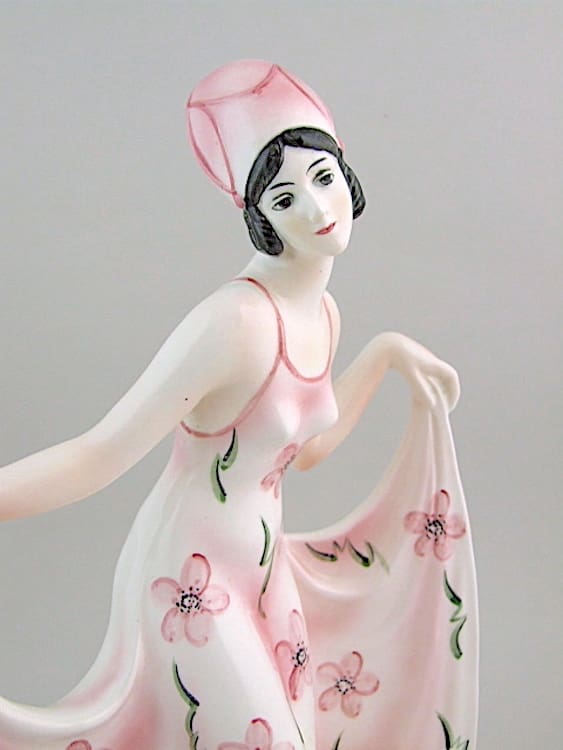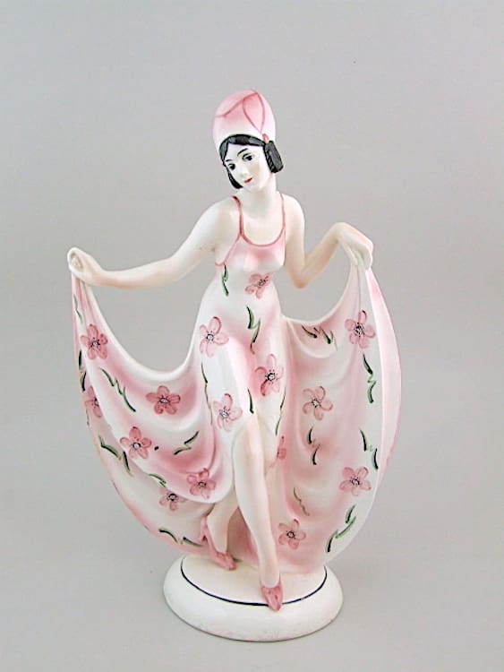 Ceramic dancer, stamped the base with the Katzhutte house mark. Beautifully hand painted detailing.