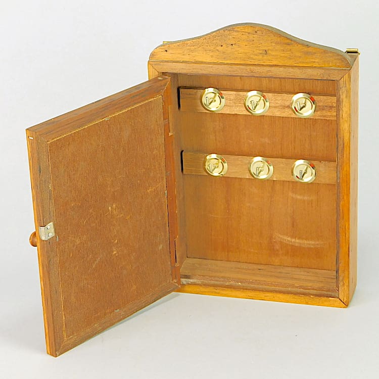French hand carved oak key cupboard with 6 hooks.