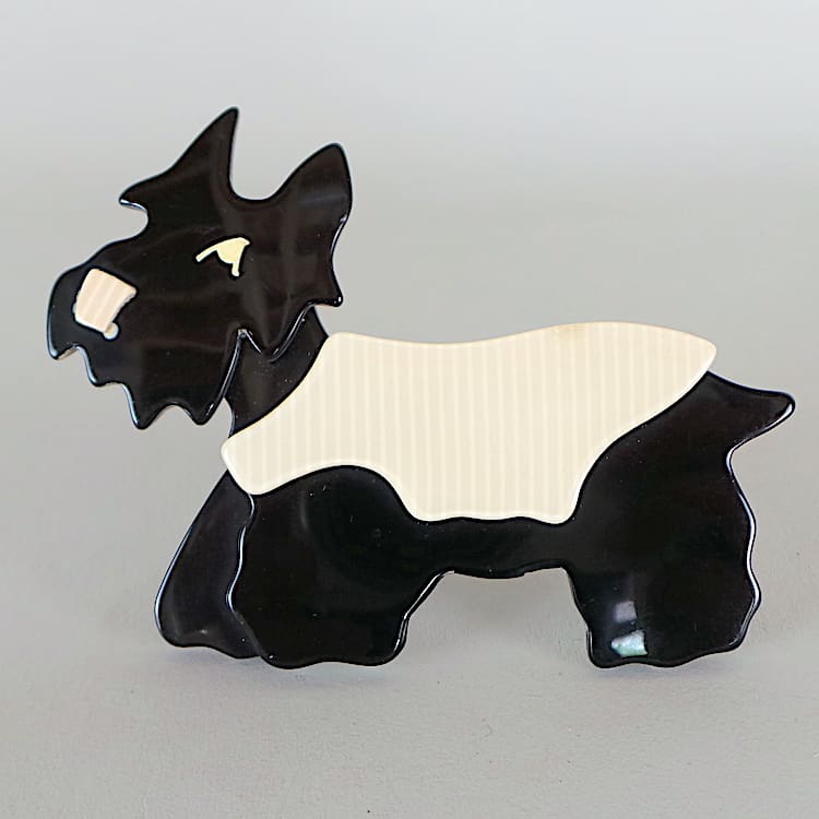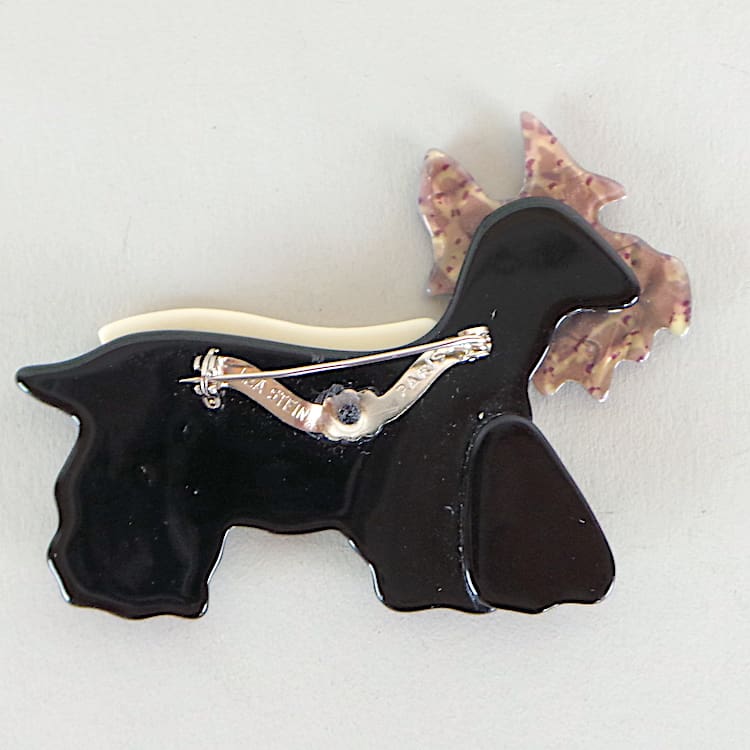 A Lea Stein Scotty dog known as Kimdu, fitted with a signed safety clasp.