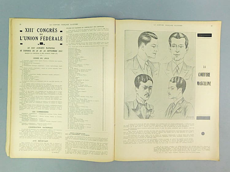 Monthly French hairdressing magazine featuring the latest styles. This edition dates to JUL 1931.