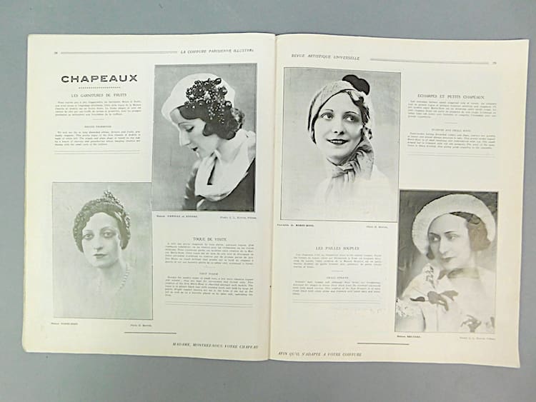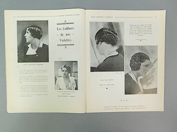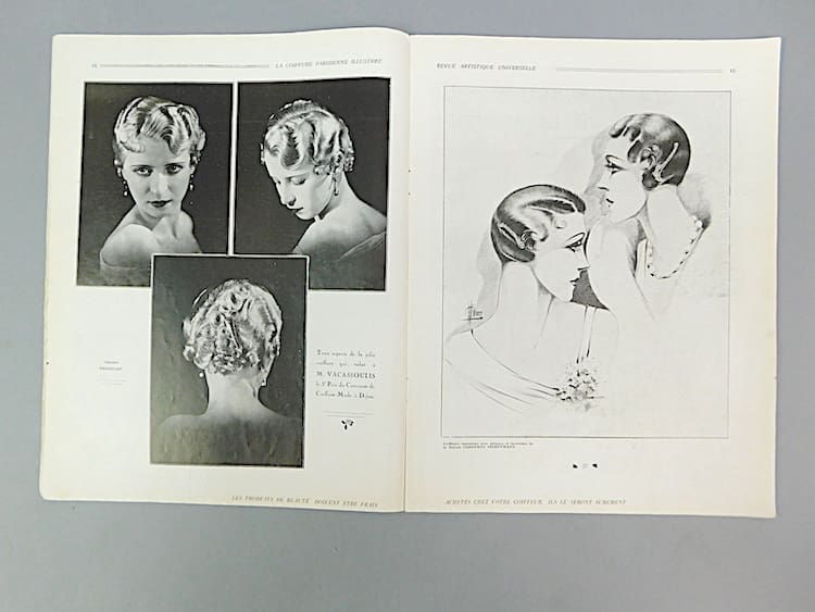 Monthly Parisienne hairdressing magazine featuring the latest styles. This edition dates to June 1932.