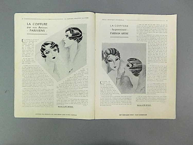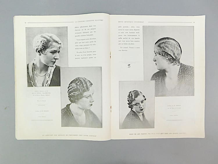 Monthly Parisienne hairdressing magazine featuring the latest styles. This edition dates to August 1932.