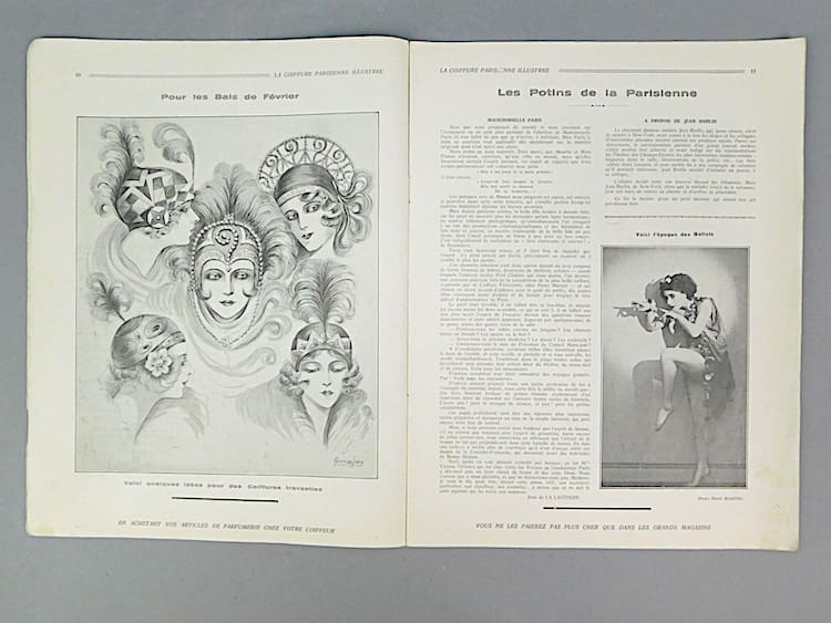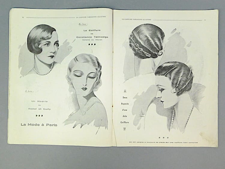 Monthly Parisienne hairdressing magazine featuring the latest styles. This edition dates to February 1931.