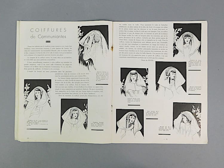 Monthly Parisienne hairdressing magazine featuring the latest styles. This edition dates to April 1935.