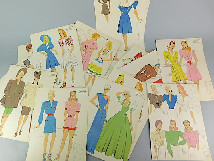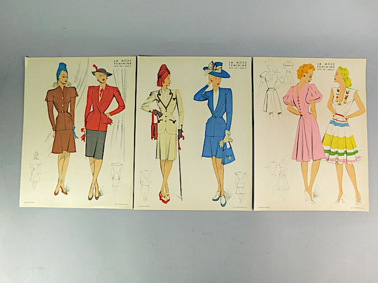 Women’s fashion booklet featuring 15 separate cards and an additional protective cover. Created, edited and designed by Jean choiselat, Paris. Edition from Spring-Summer 1945.