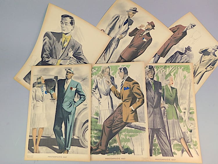 Mens fashion booklet featuring 16 separate cards and an index on the inside cover. Created and designed by Jean choiselat, Paris. Edition from Spring-summer 1947.