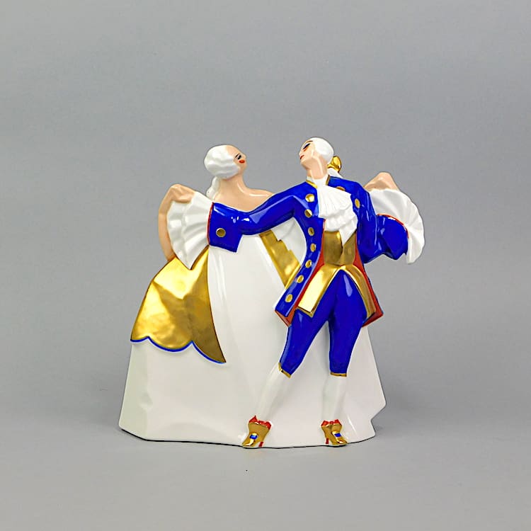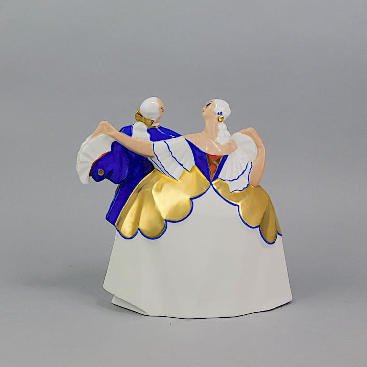 Beautiful large French ceramic night light of theatrical dancers, hand painted in navy and gold.