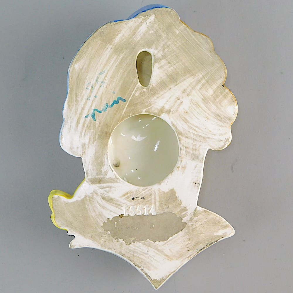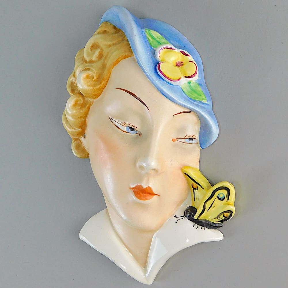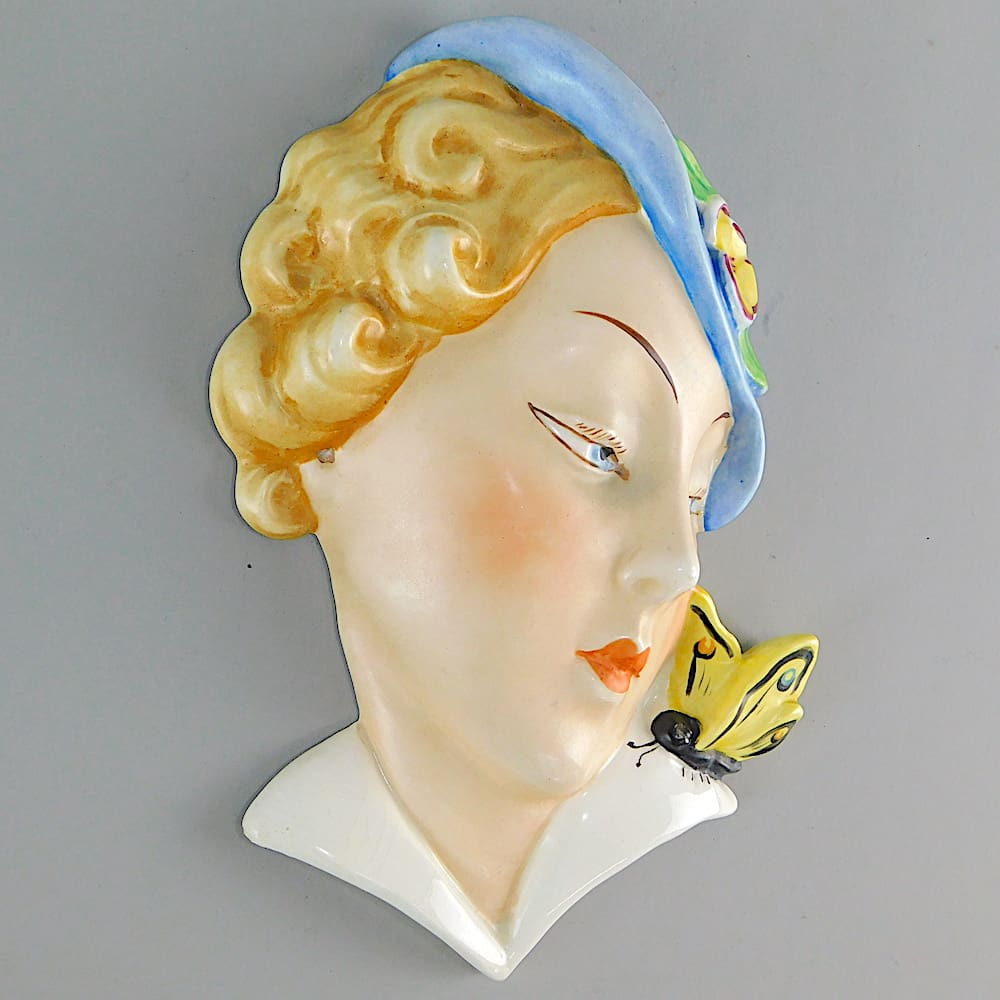 A rare Czech hand painted ceramic Art Deco wall mask by Royal Dux (unsigned).