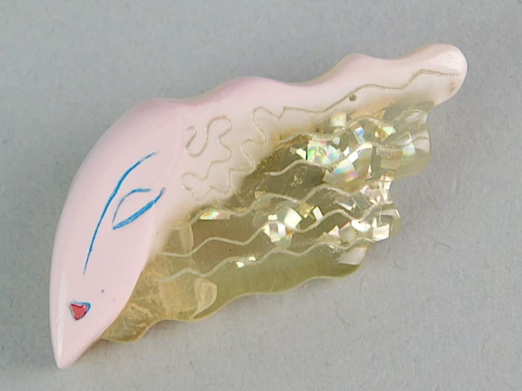 This wonderful glittery lucite brooch was I believe made by Zandra Rhodes in the early 1970’s and is fitted with a roll safety clasp.