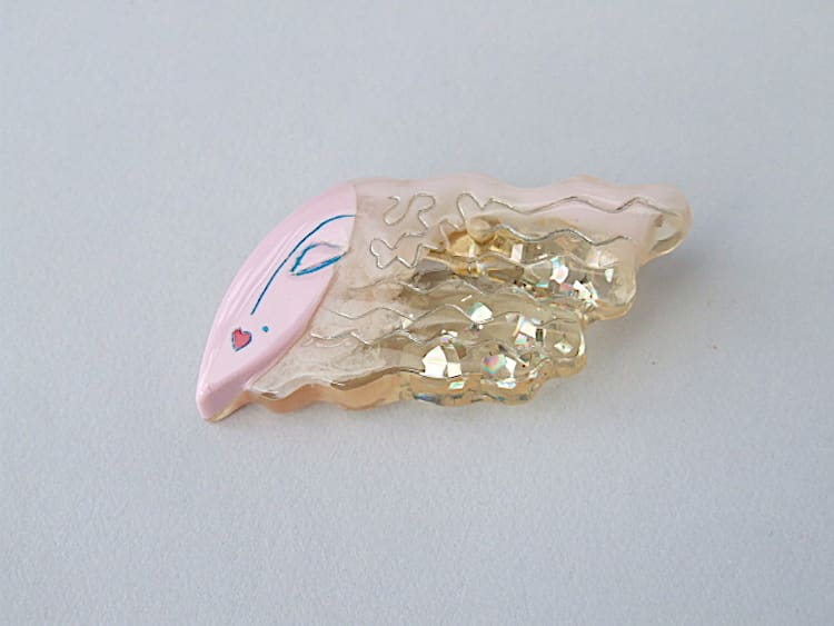 This wonderful glittery lucite brooch was I believe made by Zandra Rhodes in the early 1970’s and is fitted with a roll safety clasp.