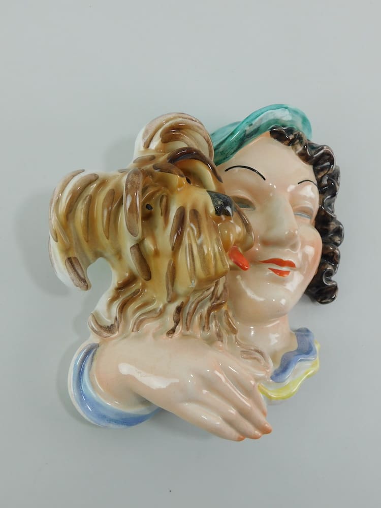 Lovely American ceramic mask by the Erphila company and made during the 1930s. Beautifully hand painted and stamped to the back Erphila and with the E&R mark.