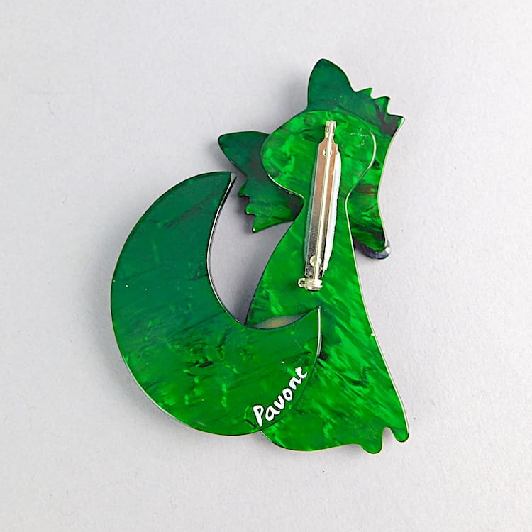 French hand painted vintage galalith, hand signed large lady fox brooch by Marie-Christine Pavone and fitted with a roll safety clasp.