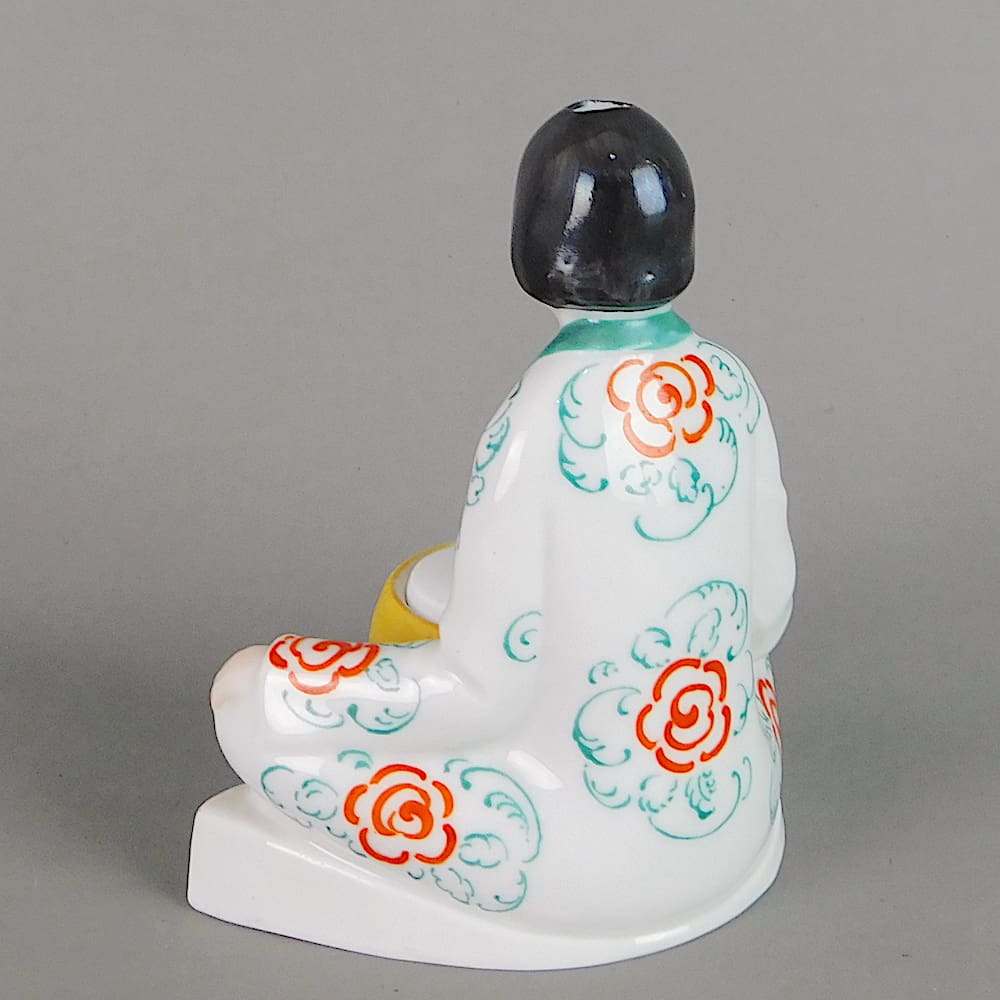 Small German hand painted Art Deco ceramic inkwell and pen holder.