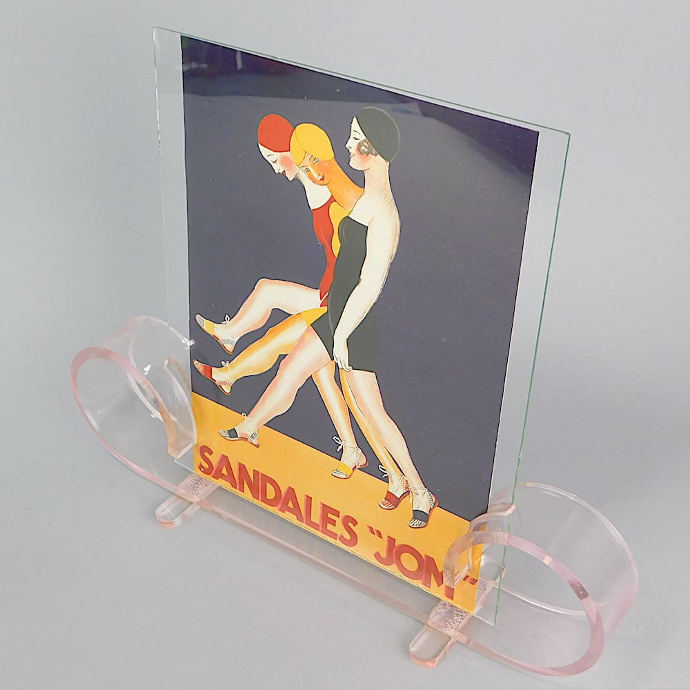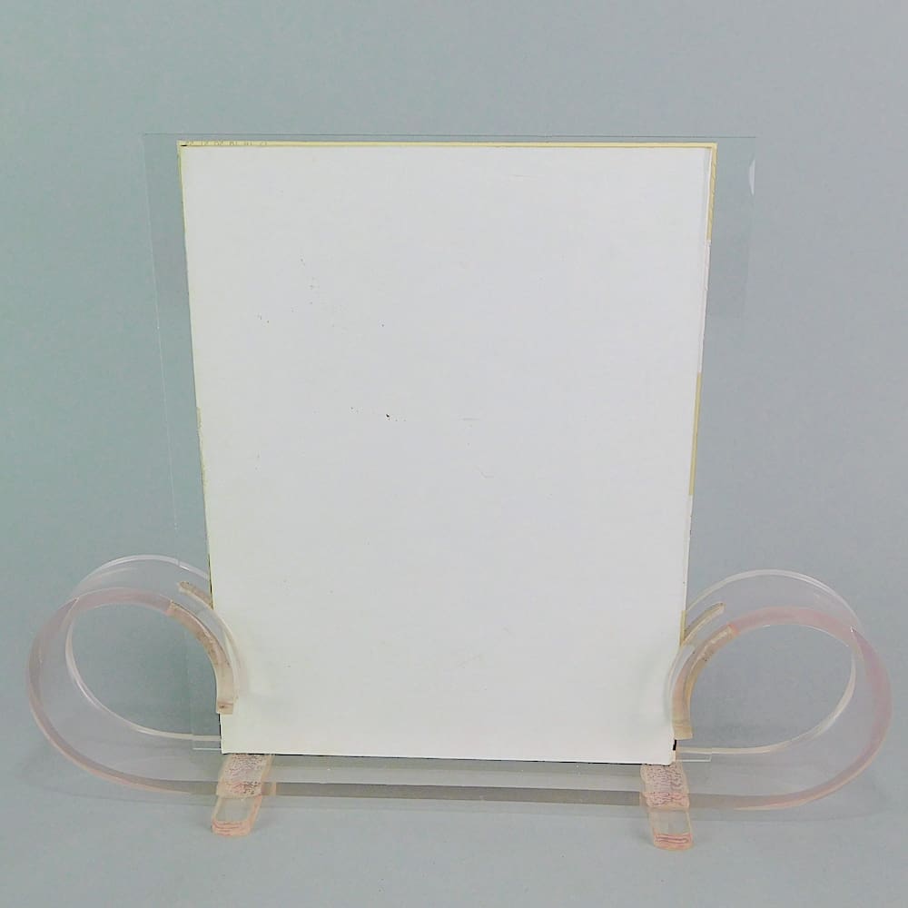 English art deco pink tinted lucite photo frame.