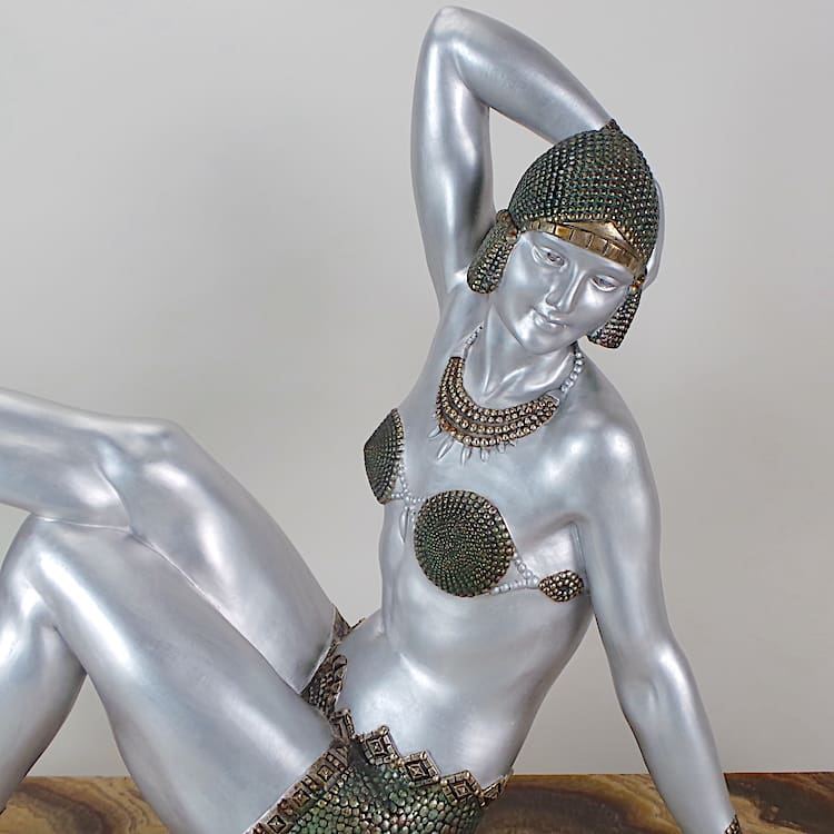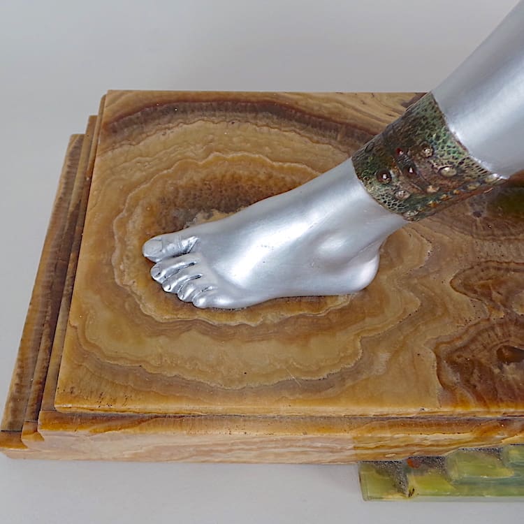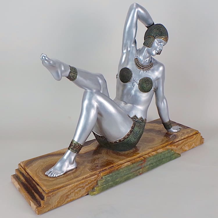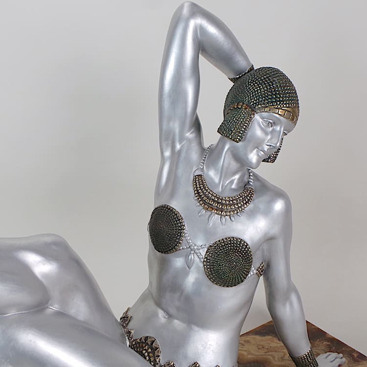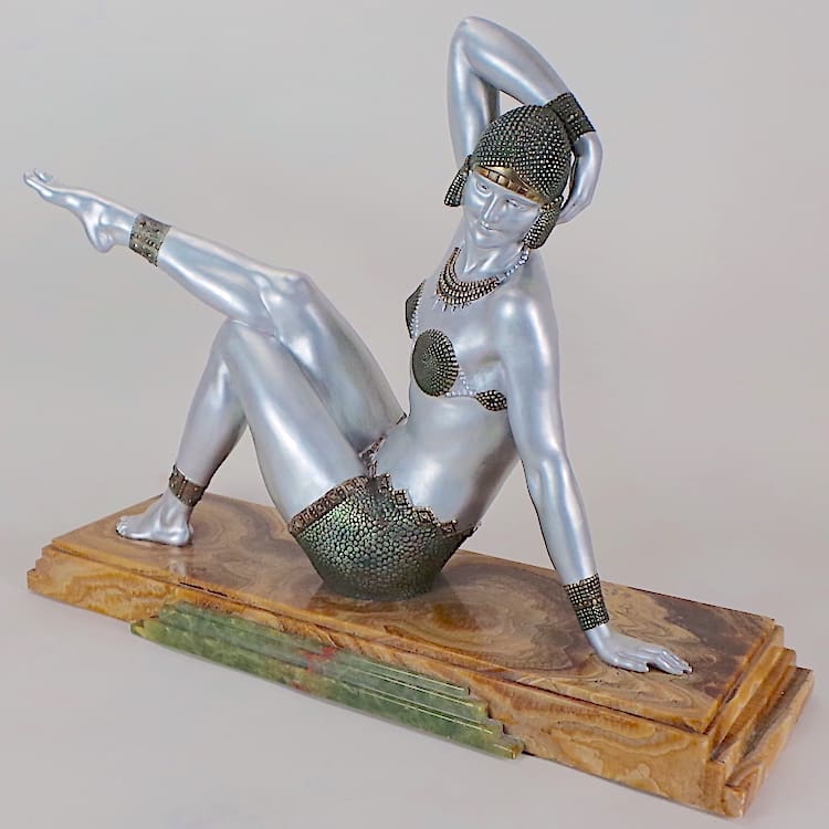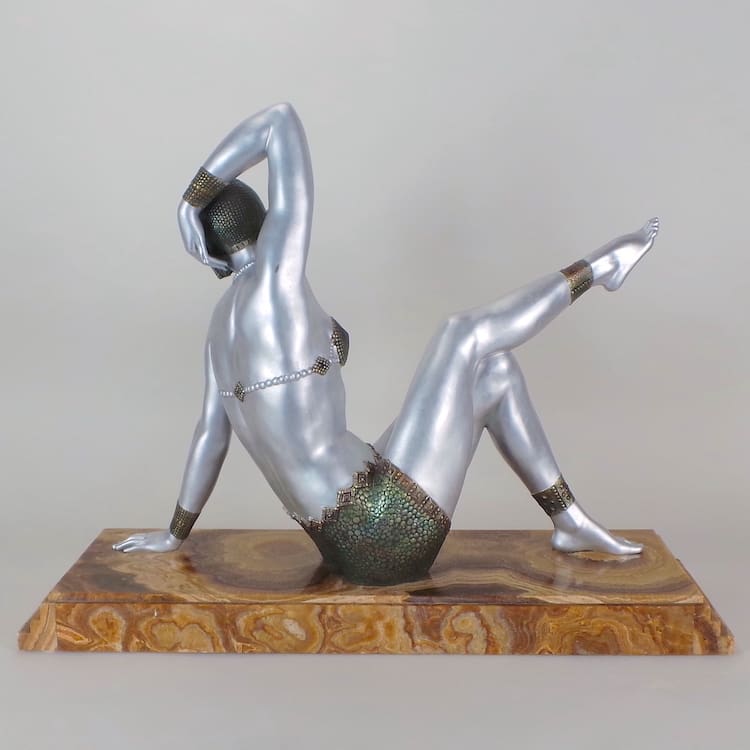Chiparus was a renowned 20th century sculptural artists who took his inspiration mainly from theatrical performances during the inter-war years. He celebrated the liberation of the new woman and many of his figures are modelled as dancers from the Follies Bergere, and the ballet ruse. His statues epitomise the Art Deco era and this beach dancer is a perfect example from the Roaring Twenties. Chiparus is considered to be the Master of Art Deco statues and his items command high prices.