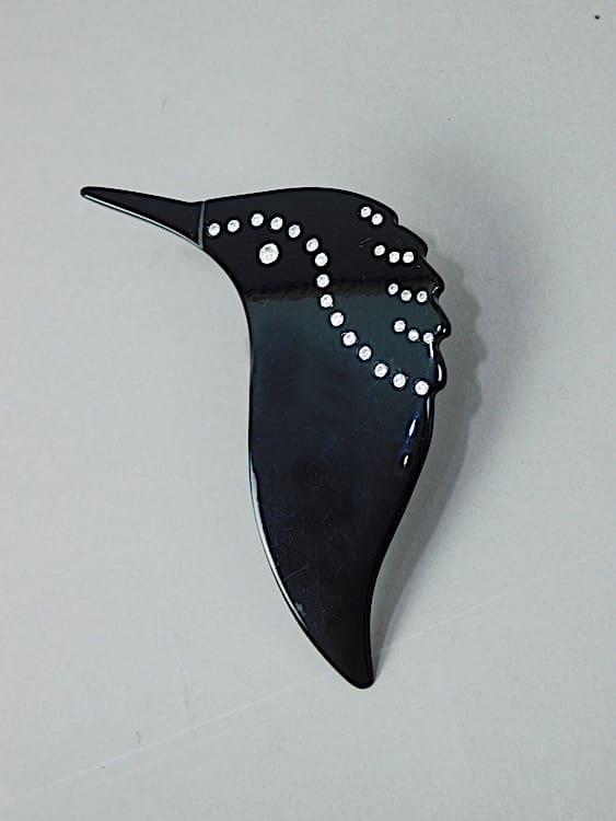 Large 3 inch (8cm) glitzy celluloid bird brooch, unsold old shop stock from the 1960s.