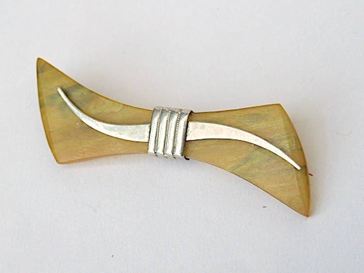 Large green and chrome bow brooch, made in the early 1930’s by Bengel.