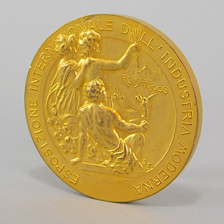Large bronze medal dated 1908 Esposizione Internationale Dll Industria Moderna. Signed Gory Firenze.