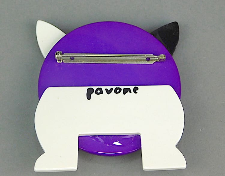 Signed to the back Pavone (Marie-Christine) and fitted with a roll safety clasp.