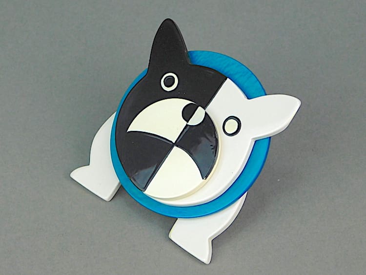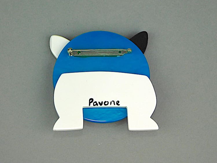 Signed to the back Pavone (Marie-Christine) and fitted with a roll safety clasp.