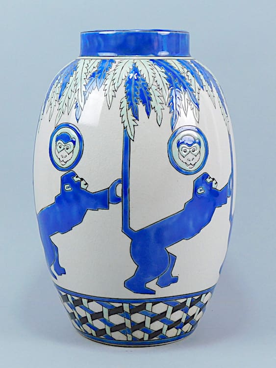 Pair of stylish contemporary monkey vases by Keralouve – La Louviere, Belgium.