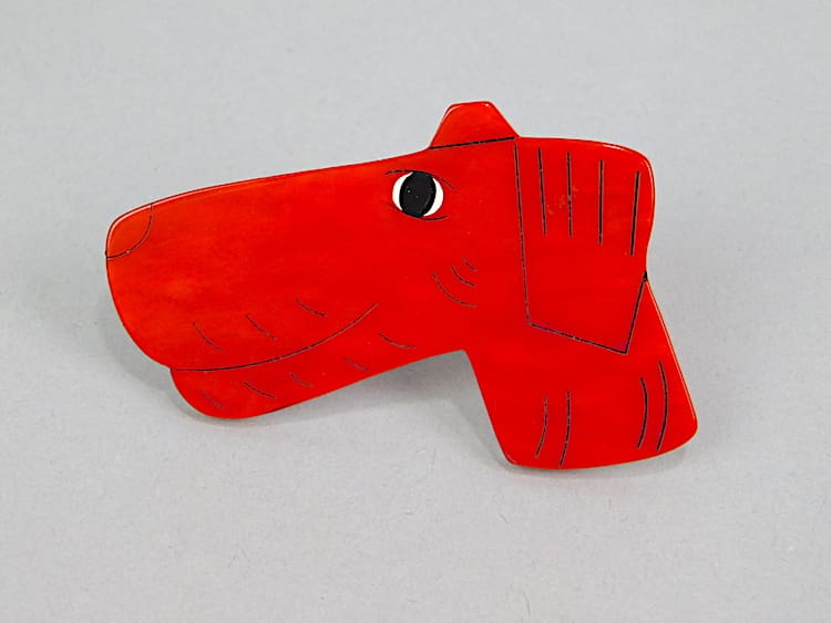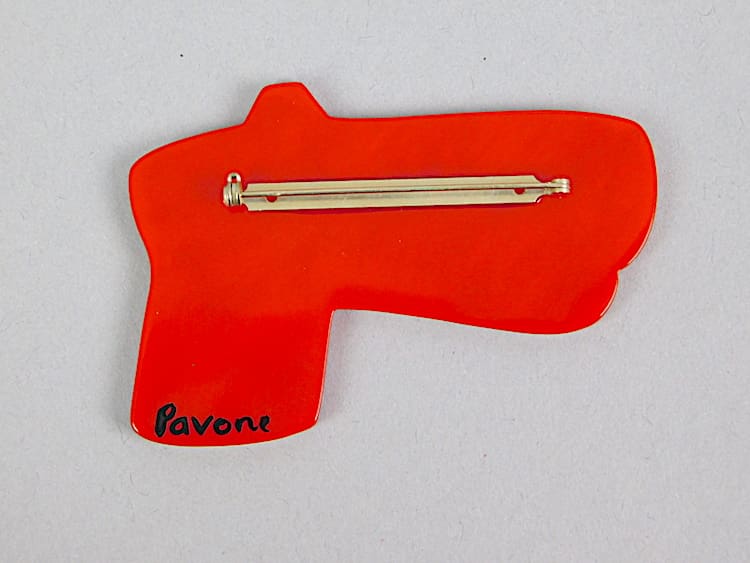 Hand painted and signed to the back and fitted with a roll safety clasp.