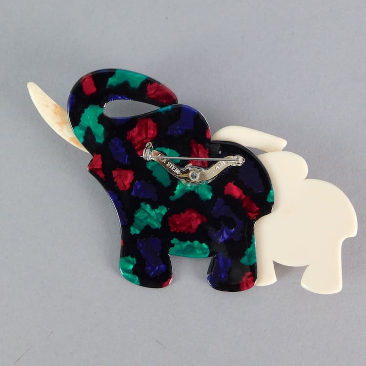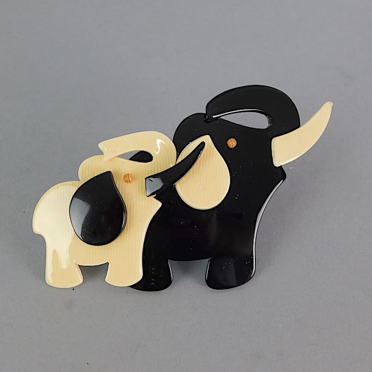 Rare large double elephants brooch. Signed to the V safety clasp.