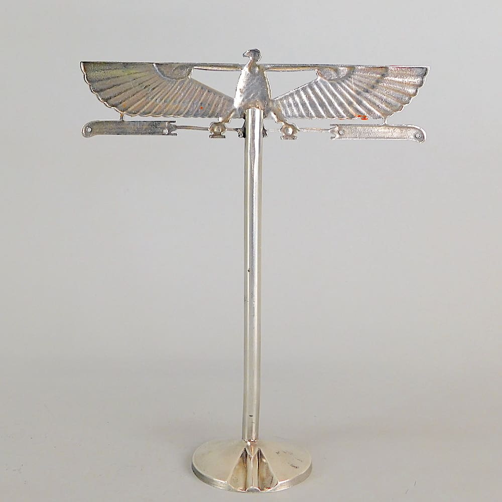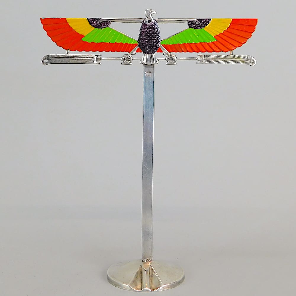 Hand painted art deco silver plated Egyptian bird earrings stand.