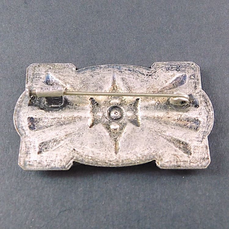 Large art deco blue and cream enamel brooch by Pierre Bex of Paris.