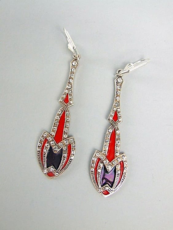 Black and red enamel earrings. Made for pierced ears and fitted with new silver hooks.