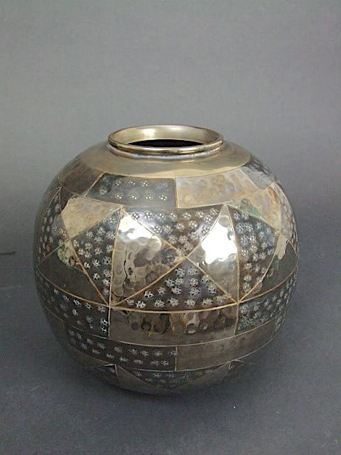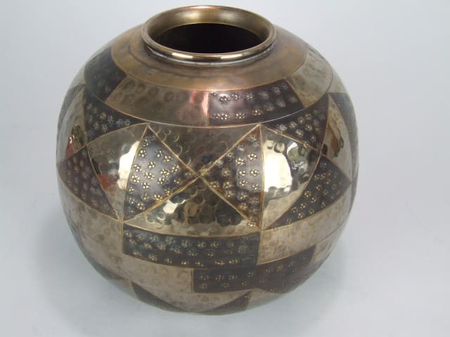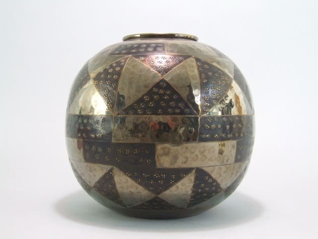 An art deco Cristofle style dinanderie ball vase (metal). Unsigned but very much in the style of a Cristofle piece.