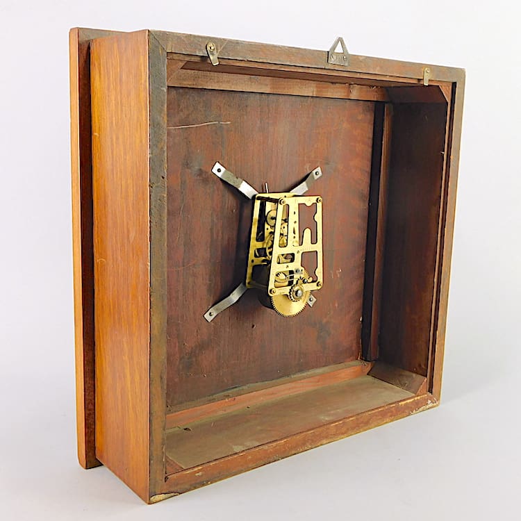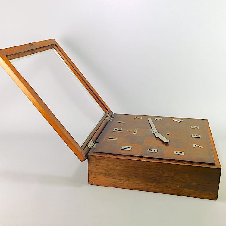 Walnut checkerboard face we all clock with aluninium hands, chrome deco numerals and Vedette plaque.