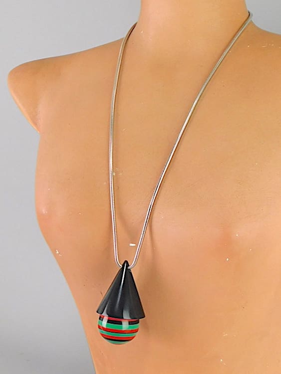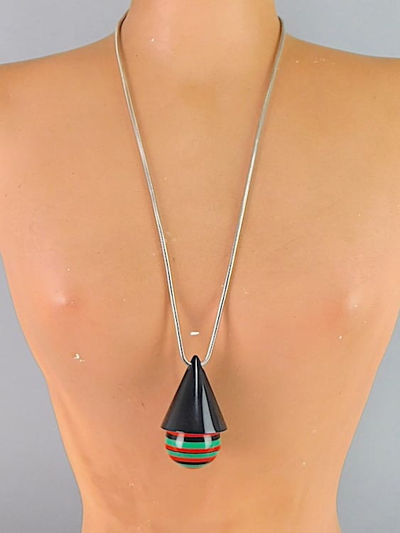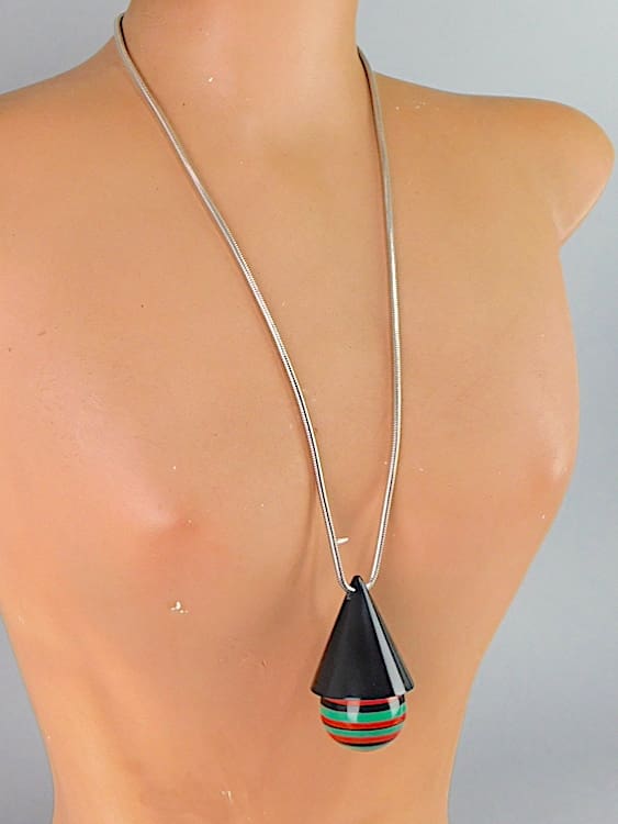 Central pendant measures a large 3 inches high and the total length from screw clasp to clasp is 26.5 inches (7.5cm, 67cm).