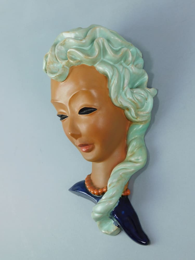 Another rare mask made in the 1930s – hand made and hand painted and marked to the back with model number 8032, Goldscheider, Wien, Made in Austria.