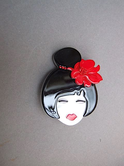 Modern French phenolic lady with diamonte floral detail to her hair.